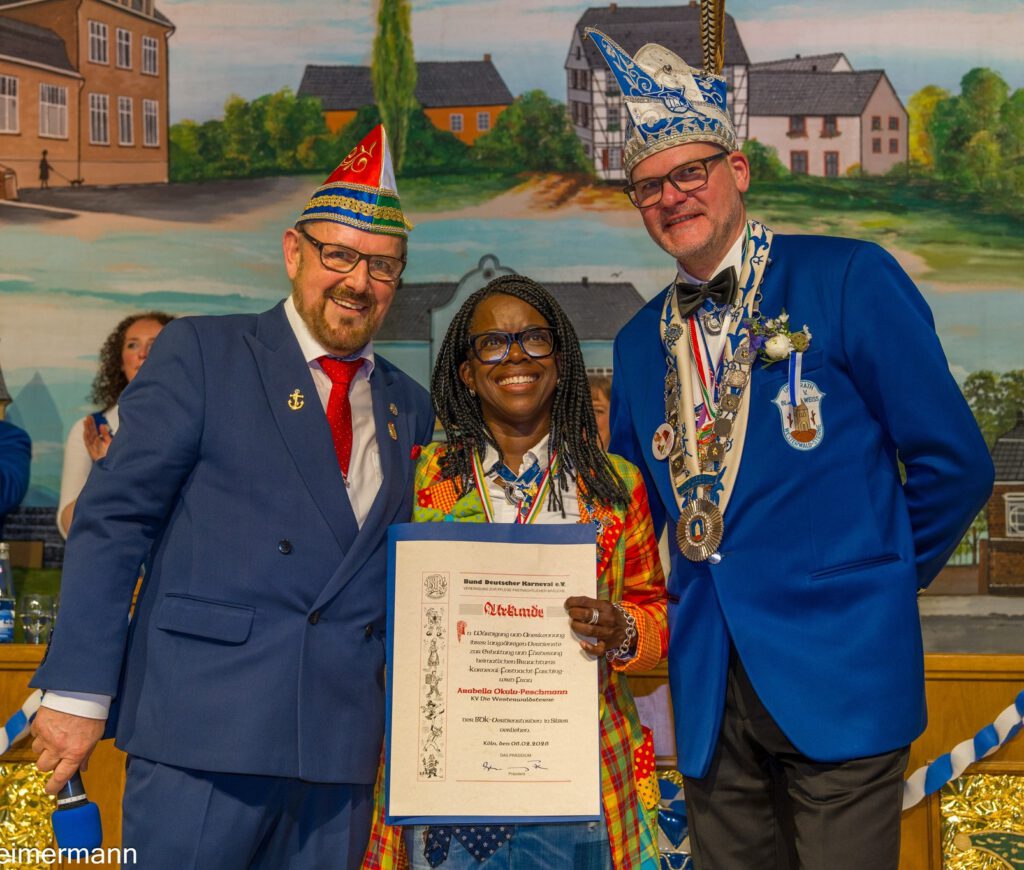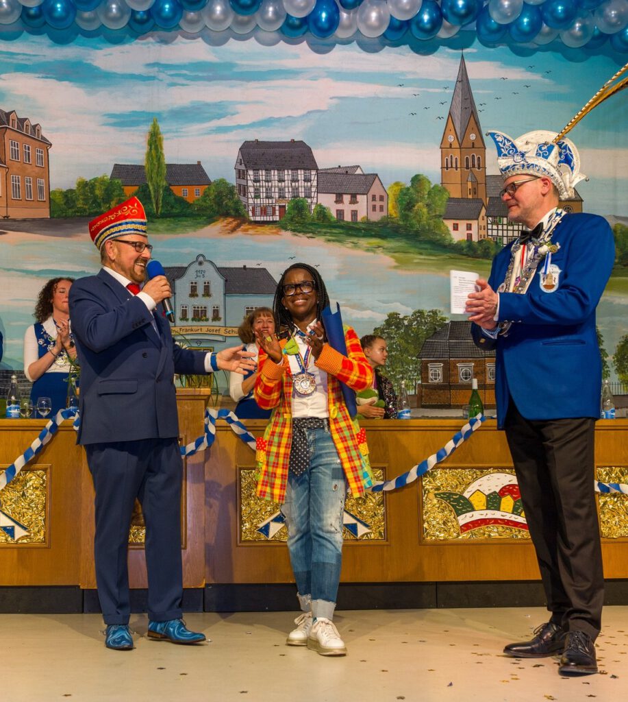 Auf der Kostümsitzung der Westerwaldsterne in Uckerath war einer der absoluten Höhepunkte die Verleihung des Ordens in Silber des Bund Deutscher Karneval an Arabella Okulu-Peschmann.