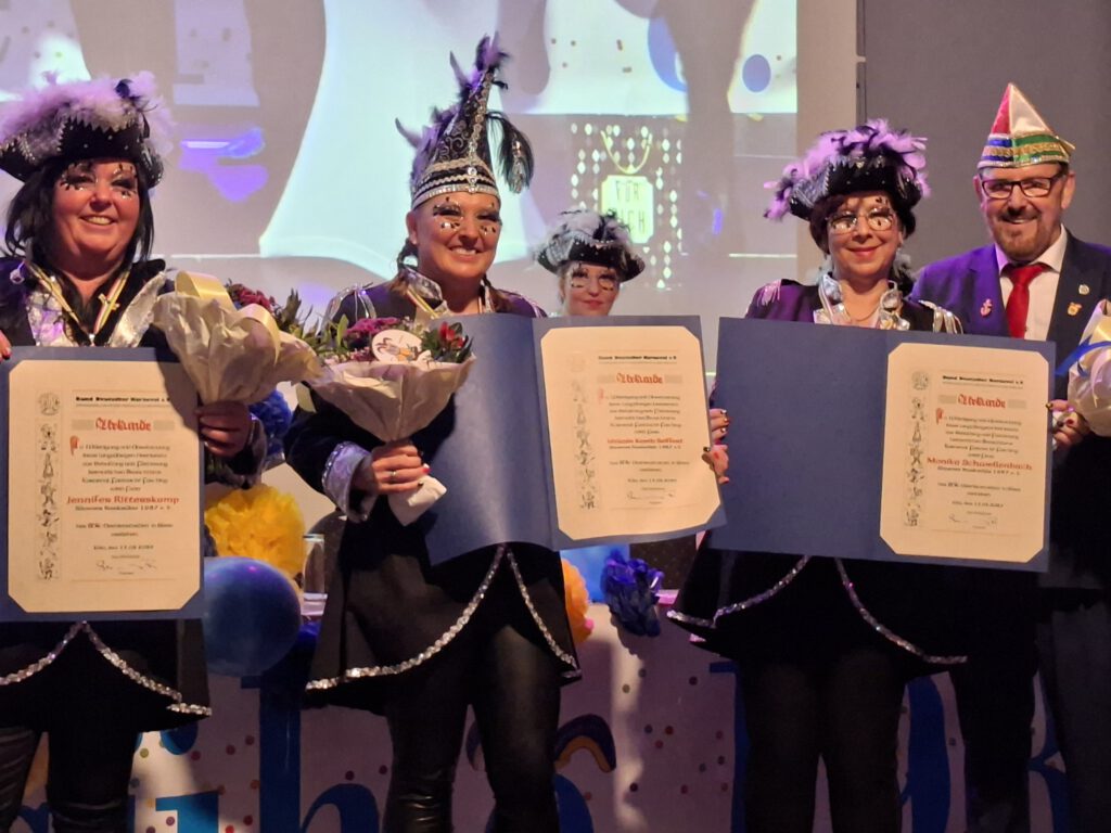 Ein streng geheimer Programmpunkt war die Ehrung von drei verdienten Mitgliedern für ihren unermüdlichen Einsatz im Sövener Karneval. Für über 25 Jahre Mitgliedschaft wurden ausgezeichnet: